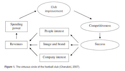 Di lain sisi, berikut ini dapat menggambarkan proses ekonomi yang terjadi di dalam klub, perusahaan, dan masyarakat. Adapun pola dan manajemen perusahaan (industri) yang dibangun oleh pasar untuk menciptakan keuntungan dan menerapkan komersialisasi sepakbola dapat terangkai dalam skema di bawah ini: